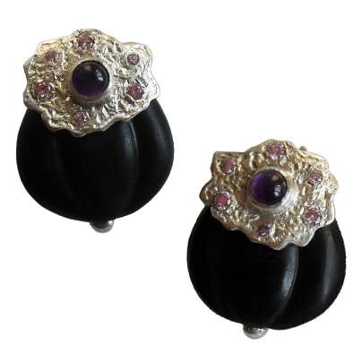 Коллекция: Персия Серьги Цветок граната Материалы: Серебро, Черное дерево, Аметист, Фианит Цена: 6 000 руб.