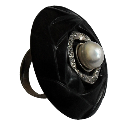 Коллекция: В стиле Коко Кольцо 300 (2) Черная роза Материалы: Серебро, Черное дерево, Жемчуг, Фианит Цена: 8 000 руб.