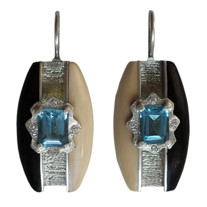 Коллекция: Со световым коридором Серьги 206 оливы Материалы: Серебро, Черное дерево, Бивень мамонта, Топаз Цена: 7 200 руб.