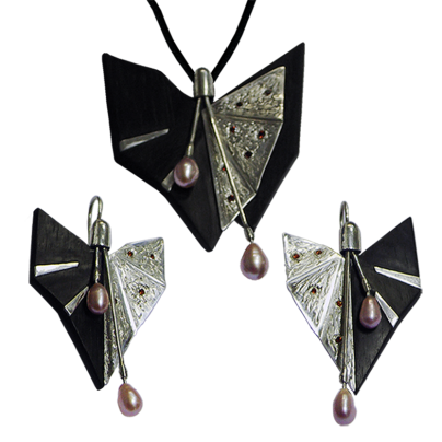 Коллекция: Театр Комплект 400 (2) Черная принцесса Материалы: Серебро, Черное дерево, Жемчуг, Гранат Цена: 12 000 руб.